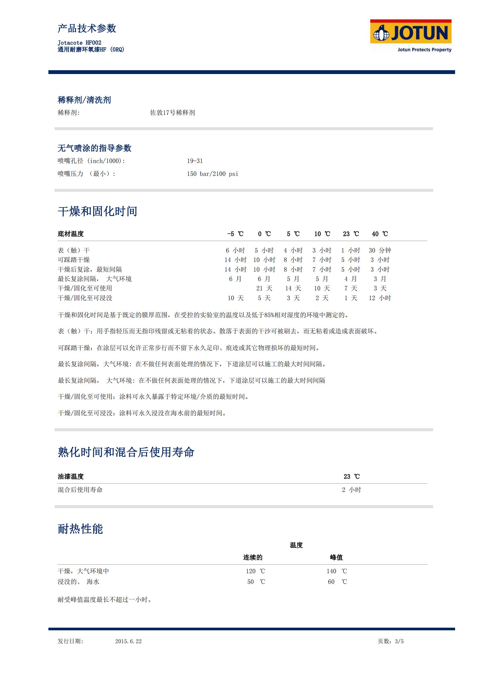 • Jotacote HF002 0RQ:這是一種雙組份聚胺固化純環(huán)氧涂料。 它是具有快干、含9%的鋁粉顏料和耐磨性好等特點的厚漿型產(chǎn)品。專用于新造船的全年全方位通用型快干涂料。 在大氣環(huán)境和浸沒環(huán)境下可作為底漆、中間漆、面漆或單道涂層系統(tǒng)。適用于適當處理的鋁、碳鋼、鍍鋅鋼、涂裝車間底漆的鋼和不銹鋼底材。 可在表面溫度低于0°C時施工。典型用途:外部和內(nèi)部區(qū)域,包括船體外殼、上層建筑、甲板、貨艙和壓載水艙。 本品有很好的柔韌性,使其非常適合于原油、化學(xué)品和穿梭油輪中的溫度變化。 通過了和一系列車間底漆的PSPC交叉實驗測試。 滿足客戶對鋁色顏料的特定需求